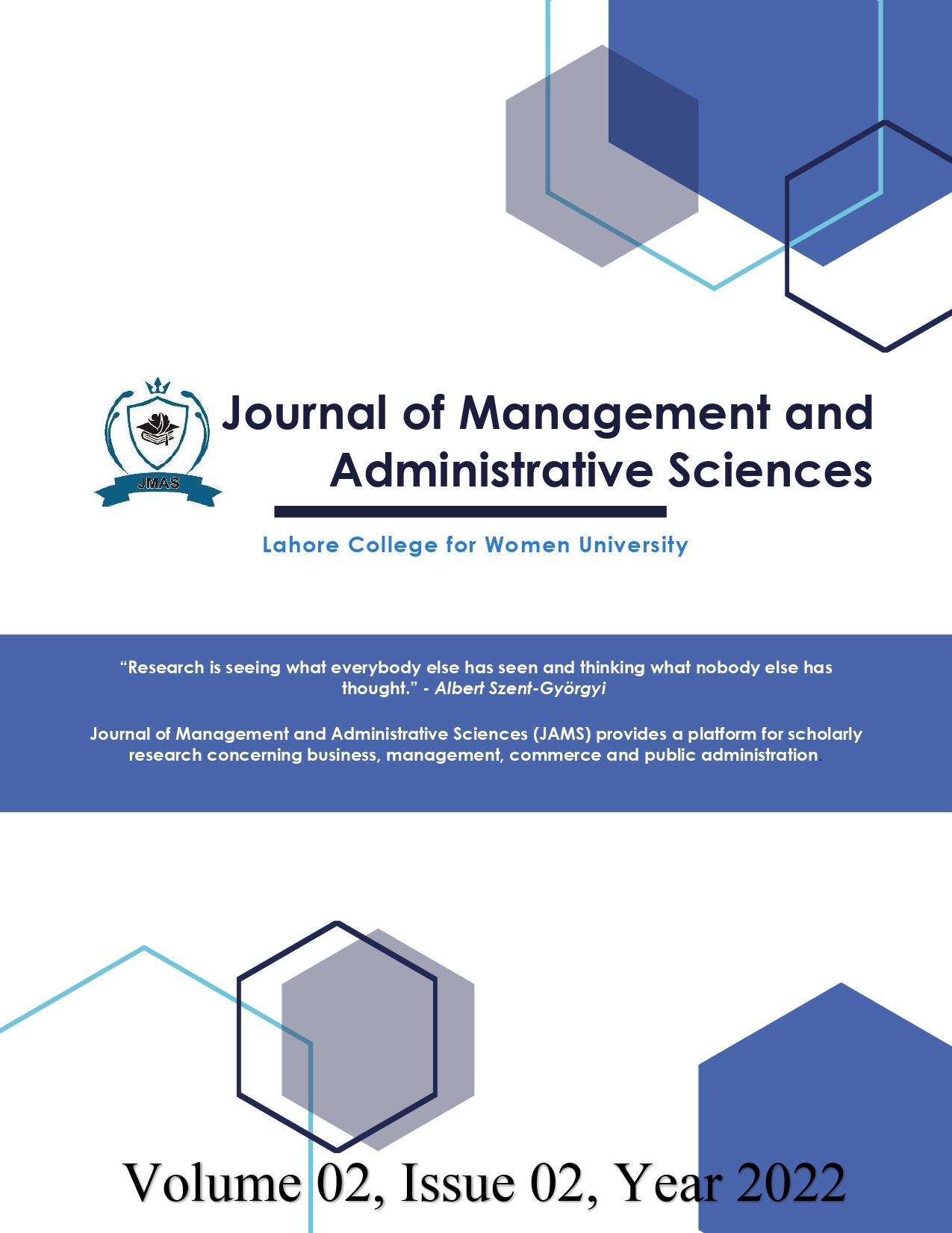 Vol. 2 No. 2 (2022)Journal of Management and Administrative Sciences (JMAS) aims to provide a platform for increasing the flow of scholarly research concerning business, management, commerce, and public administration. This is the second volume and second issue of 2022 with 5 research papers