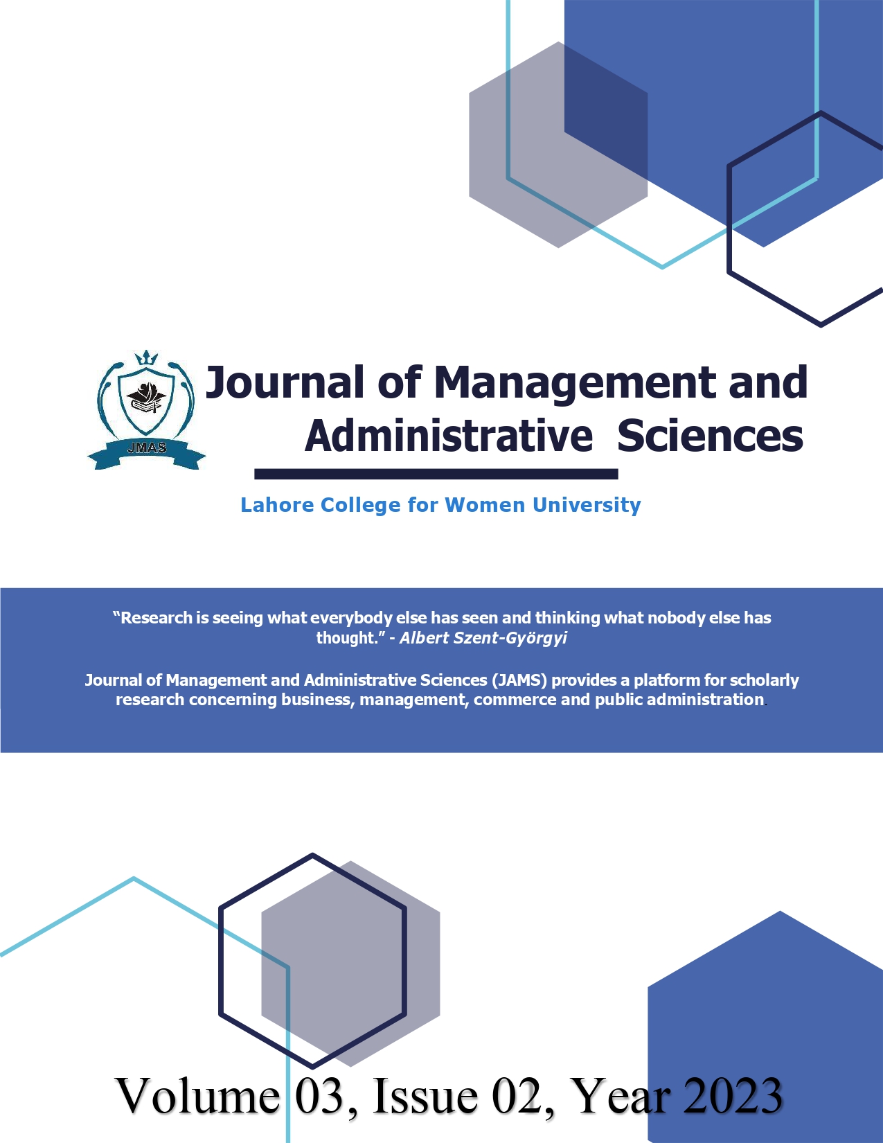 Vol. 3 No. 2 (2023)Journal of Management and Administrative Sciences (JMAS) aims to provide a platform for increasing the flow of scholarly research concerning business, management, commerce, and public administration. This is the third volume and second issue of 2023 with 5 research papers
