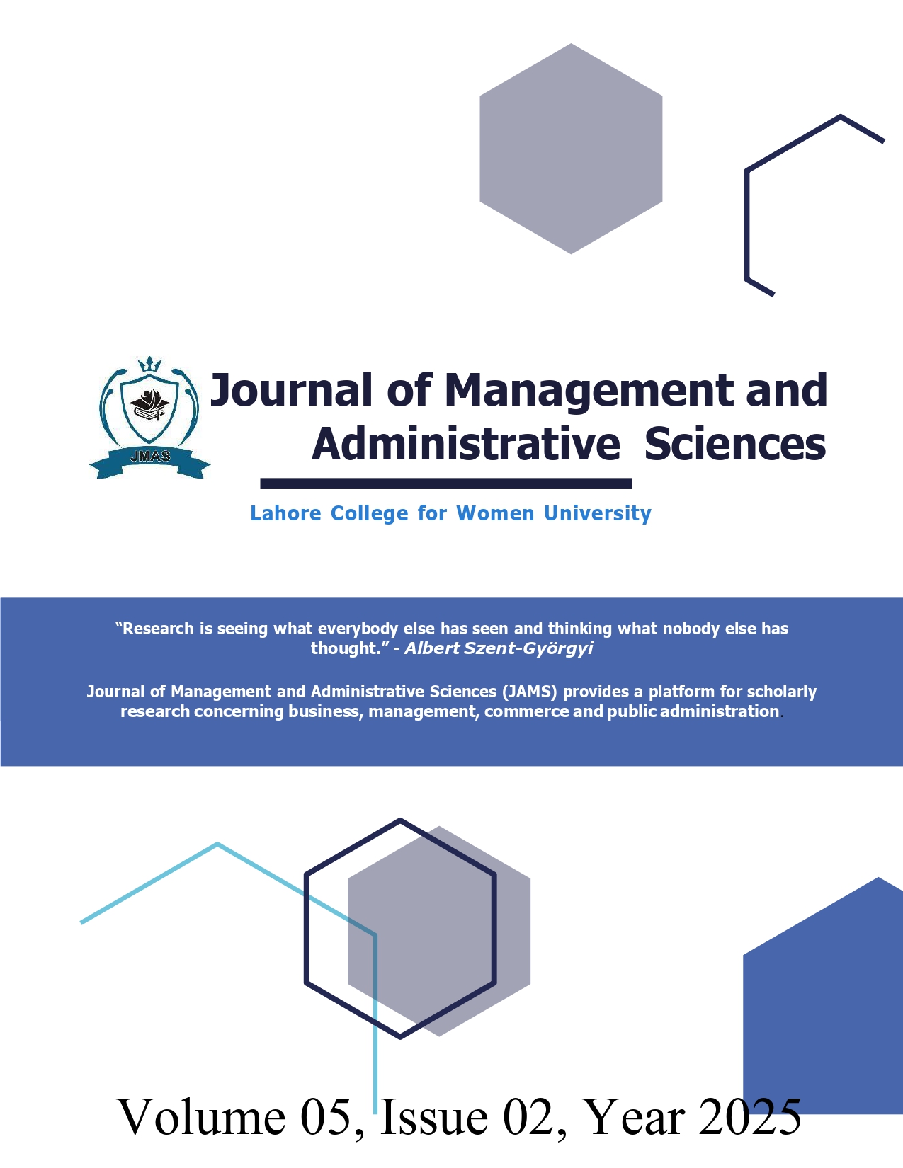Vol. 5 No. 2 (2025)Journal of Management and Administrative Sciences (JMAS) aims to provide a platform for increasing the flow of scholarly research concerning business, management, commerce, and public administration. This is the fifth volume and Second issue of 2025 with 6 research papers